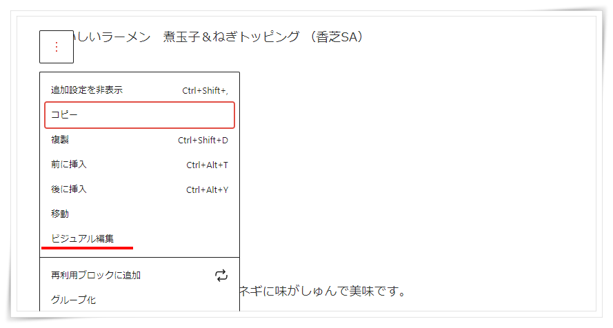 ビジュアル編集に画面を戻して確認してみます。
