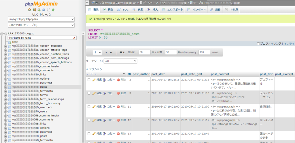 wp〇〇〇〇〇_postsのテーブルを開きます。