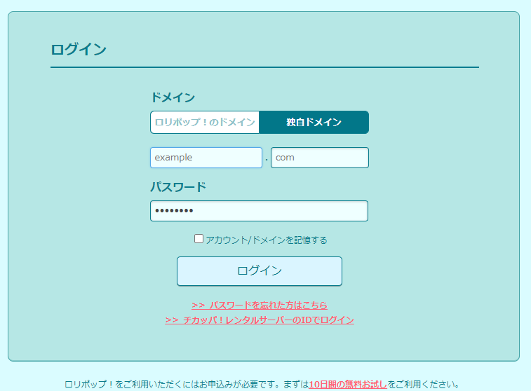 ロリポップ!ユーザー専用ページから、ログインします。