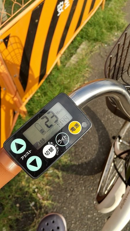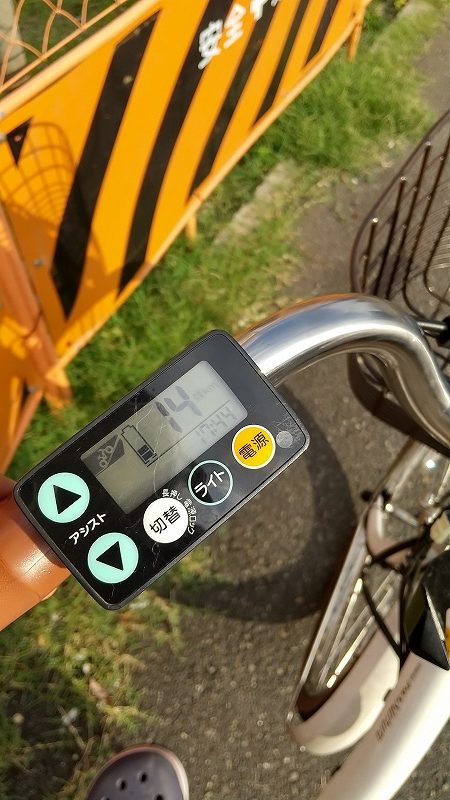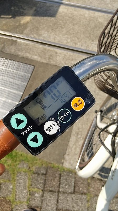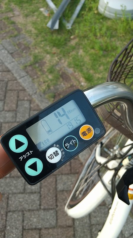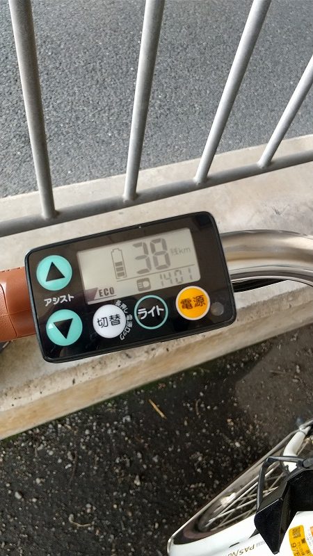 エコモードで残量14km、強モードで残量8KM。使い方にもよりますが恐らく後2時間くらいは稼働できると推測できます。